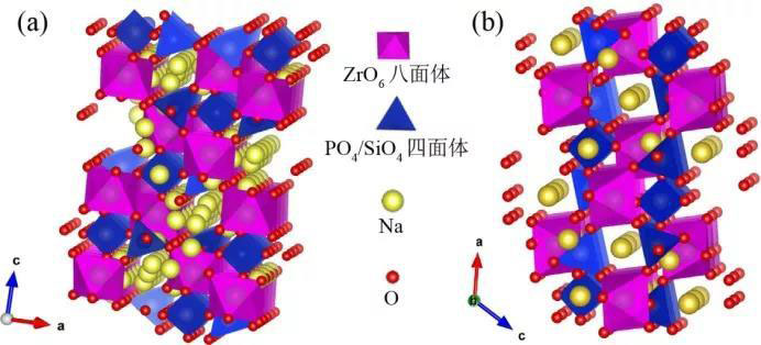 圖1 NASICON晶體結(jié)構(gòu): (a)六方結(jié)構(gòu) (b)單斜結(jié)構(gòu)