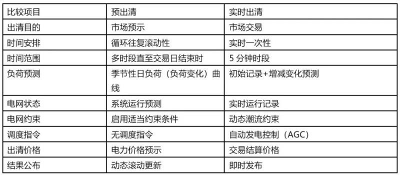 澳大利亞國(guó)家電力市場(chǎng)設(shè)計(jì)了兩種不同市場(chǎng)功能的出清過(guò)程,市場(chǎng)預(yù)出清與實(shí)時(shí)市場(chǎng)出清,它們使用同一技術(shù)支持系統(tǒng)與優(yōu)化調(diào)度程序。電力市場(chǎng)出清是市場(chǎng)運(yùn)行中心根據(jù)發(fā)電企業(yè)報(bào)價(jià)或更改的報(bào)價(jià),用電負(fù)荷預(yù)測(cè)以及電網(wǎng)運(yùn)行狀態(tài),在滿足輸電載流約束條件下,按照經(jīng)濟(jì)調(diào)度原則進(jìn)行優(yōu)化安排決定發(fā)電機(jī)組(站)出力的過(guò)程。建立預(yù)出清機(jī)制是為了鼓勵(lì)市場(chǎng)主體在電力系統(tǒng)運(yùn)行可能出現(xiàn)問(wèn)題情況時(shí)做出積極反應(yīng),以盡可能地避免運(yùn)行中心采用強(qiáng)制性的干預(yù)措施。市場(chǎng)預(yù)出清與實(shí)時(shí)市場(chǎng)出清有幾點(diǎn)不同。首先,市場(chǎng)預(yù)出清產(chǎn)生的發(fā)電出力不用于傳送自動(dòng)發(fā)電控制(AGC)執(zhí)行指令。其次,預(yù)出清電價(jià)并不用于交易結(jié)算。除了與各州電力負(fù)荷預(yù)報(bào)對(duì)應(yīng)市場(chǎng)出清電力價(jià)格外,市場(chǎng)預(yù)出清還計(jì)算每個(gè)州電力價(jià)格對(duì)電力負(fù)荷變化的敏感程度。預(yù)出清機(jī)制的另外一個(gè)市場(chǎng)功能是在實(shí)時(shí)市場(chǎng)出清發(fā)生故障時(shí),用最臨近一次的預(yù)出清做為備案替代實(shí)時(shí)出清。表2對(duì)市場(chǎng)預(yù)出清和實(shí)時(shí)出清進(jìn)行了比較。