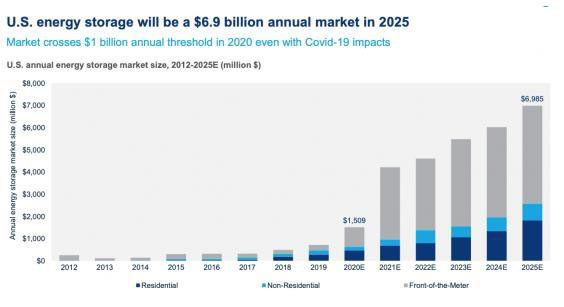 盡管由于冠狀病毒疫情造成的許可、建設(shè)和客戶獲取延誤的風(fēng)險(xiǎn)將會(huì)持續(xù)到今年第三季度和第四季度,但美國2020年市場仍持續(xù)增長。而根據(jù)美國儲(chǔ)能協(xié)會(huì)最近發(fā)布了一項(xiàng)“擴(kuò)展愿景”報(bào)告,美國到2030年將會(huì)部署裝機(jī)容量100GW的儲(chǔ)能系統(tǒng),以支持美國向可再生能源和更高效能源的能源轉(zhuǎn)型目標(biāo),同時(shí)提高電力系統(tǒng)可靠性并以經(jīng)濟(jì)高效的方式進(jìn)行。