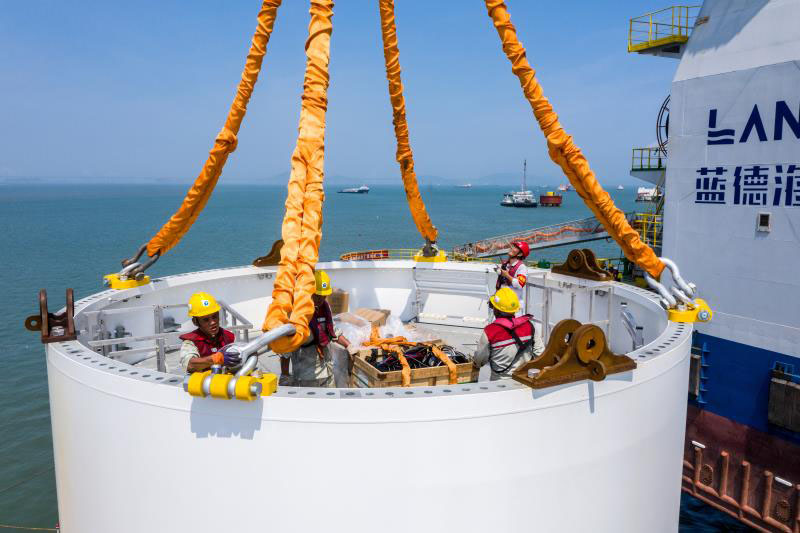 目前,該項目正按既定目標有序推進,已累計完成18個海上風(fēng)機承臺基礎(chǔ)沉樁、6個基礎(chǔ)承臺澆筑、陸上升壓站主要電氣設(shè)備安裝調(diào)試等重點工作,第二臺風(fēng)機正準備進行吊裝。(鄒小卿 曹爾薇)