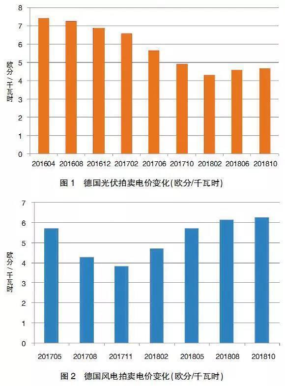 為降低能源轉型成本,德國轉變固定電價機制,對新建機組施行上網電價拍賣機制。在拍賣機制的影響下,德國光伏、風電平均拍賣電價出現(xiàn)變化。