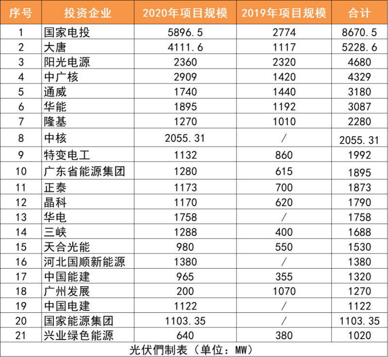 另一方面,以國家電投、大唐、中廣核、中核、華電、華能、國家能源集團(tuán)為代表的央企獲批規(guī)?;揪尸F(xiàn)出翻倍增長的勢頭,尤其是大唐、中核、華電這三家2020年項目獲批規(guī)模暴增,成為當(dāng)之無愧的“黑馬”。值得一提的是,此前不少專注于水電、風(fēng)電項目開發(fā)的投資商、設(shè)計院等也在將目光轉(zhuǎn)向光伏電站投資,例如風(fēng)電巨無霸國家能源集團(tuán)也在2020年開啟了光伏電站投資之旅。