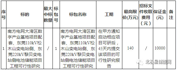 南方電網(wǎng)調(diào)峰調(diào)頻發(fā)電有限公司就廣州調(diào)峰調(diào)頻科技發(fā)展有限公司南方電網(wǎng)大灣區(qū)數(shù)字產(chǎn)業(yè)基地項(xiàng)目配套、東莞110kV松木山變電站側(cè)、東莞220kV黎貝變電站側(cè)電池儲(chǔ)能項(xiàng)目工程可行性研究向國內(nèi)公開招標(biāo),凡有意參加投標(biāo)的單位均可購買招標(biāo)文件。