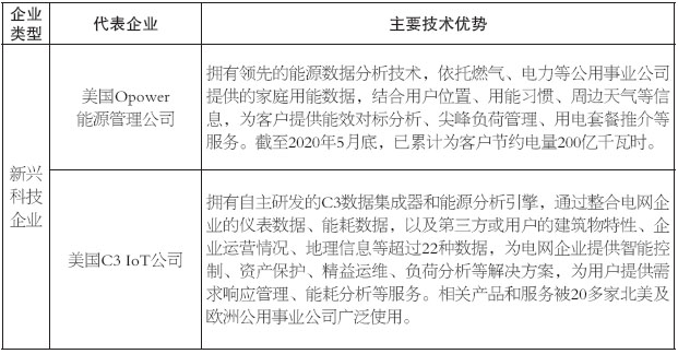 國外方面,受益于不同能源品種業(yè)務(wù)關(guān)聯(lián)緊密、行業(yè)壁壘較少的先天優(yōu)勢(shì),大量傳統(tǒng)能源企業(yè)同時(shí)涉及電氣熱、產(chǎn)供銷等多能源全產(chǎn)業(yè)鏈業(yè)務(wù),為開展綜合能源服務(wù)奠定了強(qiáng)大的技術(shù)基礎(chǔ),代表企業(yè)為法國電力集團(tuán)、德國意昂集團(tuán)、日本東京電力公司等;近年來,新興科技企業(yè)依托領(lǐng)先的能源大數(shù)據(jù)技術(shù),深耕數(shù)據(jù)增值服務(wù)細(xì)分市場(chǎng),代表企業(yè)為美國Opower、C3 IoT公司等。