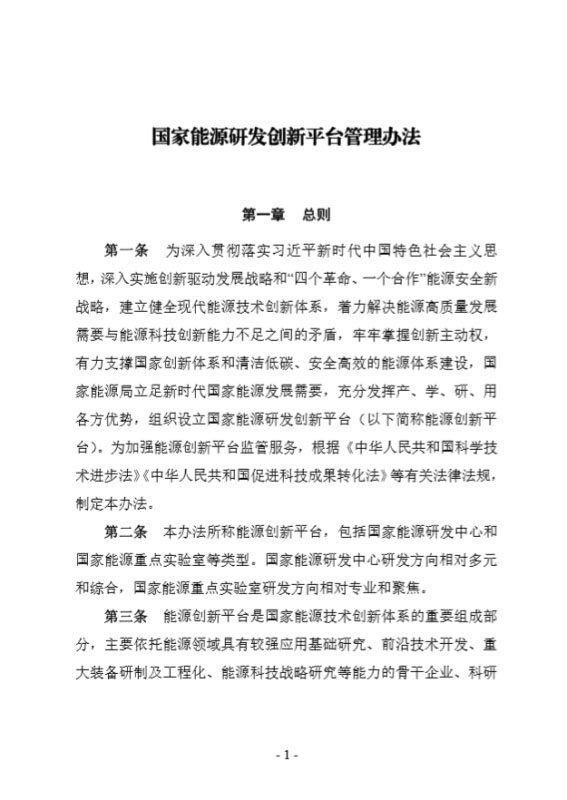附件:《國(guó)家能源研發(fā)創(chuàng)新平臺(tái)管理辦法》