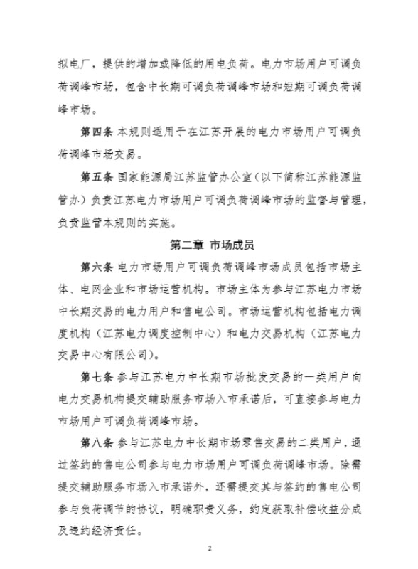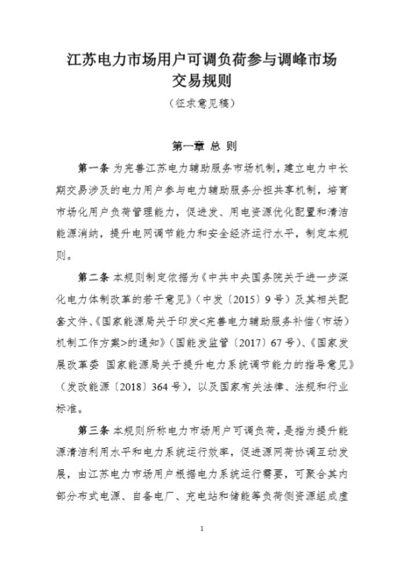 2020年9月11日,國(guó)家能源局江蘇監(jiān)管辦公室發(fā)布關(guān)于《江蘇電力市場(chǎng)用戶可調(diào)負(fù)荷參與調(diào)峰市場(chǎng)交易規(guī)則(征求意見稿)》公開征求意見的公告,原文如下: