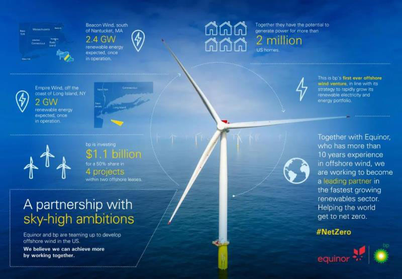 bp在美國投資11億美元,購買Equinor在美兩個海上風(fēng)電項目50%的股份;