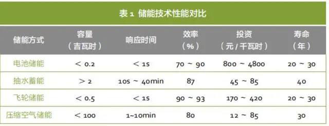 表 1 給出了一般情況下各種儲能技術(shù)的性能對比,電池儲能和飛輪儲能響應(yīng)時間很短,但存儲容量較小,經(jīng)濟性較差;壓縮空氣儲能存儲容量最大可至 100 吉瓦時,但響應(yīng)時間較慢。儲能技術(shù)本身可為電力系統(tǒng)提供或吸收大量的有功功率,抽蓄等儲能技術(shù)是電力系統(tǒng)靈活性的重要來源;伴隨技術(shù)的快速發(fā)展,不同儲能方式可滿足不同時間尺度下靈活性需求。