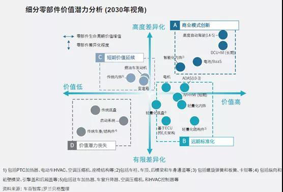 而長遠來說,隨著L4級與無人駕駛的出現(xiàn),智能化零部件增多,更高性能的計算平臺與激光雷達的搭載,也將催生新的商業(yè)模式,車輛價值增量將向智能化、網(wǎng)聯(lián)化轉移。高級別自動駕駛、基于車電分離模式的BaaS(電池即服務)等差異化程度高、能夠在全生命周期持續(xù)創(chuàng)造價值的零部件,在未來將具有更大的增值空間。