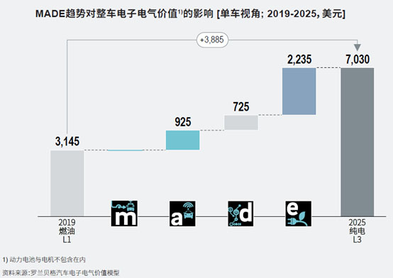整體來看,未來電動化與智能網(wǎng)聯(lián)供應鏈將隨著各自技術發(fā)展貢獻更多的價值。從短期來看,3-5年內(nèi),自動駕駛水平還處在L3級及以下時,供應鏈主要價值增長來自于電動化部件,對整車的貢獻價值將超過50%(還不包括動力電池)。
