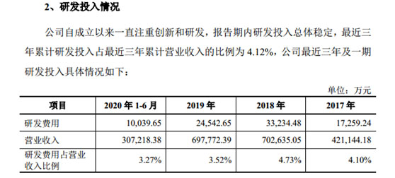 2017年、2018年、2019年和2020年上半年,廈鎢新能研發(fā)費(fèi)用分別約為1.73億元、3.32億元、2.45億元和1億元。然而,這總計(jì)8.5億元的研發(fā)費(fèi)用存在著諸多疑問(wèn)。