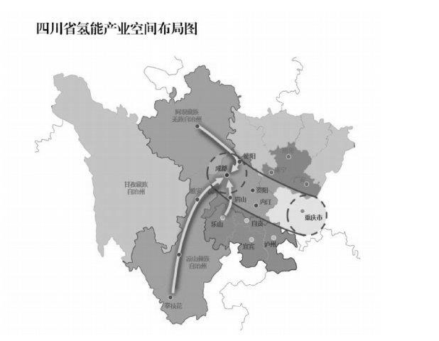 在空間布局方面,我省將圍繞成渝地區(qū)雙城經(jīng)濟(jì)圈建設(shè)的戰(zhàn)略部署,按照省委 “一干多支、五區(qū)協(xié)同”發(fā)展要求,以各地自然資源稟賦及現(xiàn)有氫能相關(guān)產(chǎn)業(yè)為基礎(chǔ),遵循合理配置、重點突出、有序協(xié)同、互聯(lián)互通的原則,形成“一軸、一港、一區(qū)、三路”的“1113”發(fā)展格局。