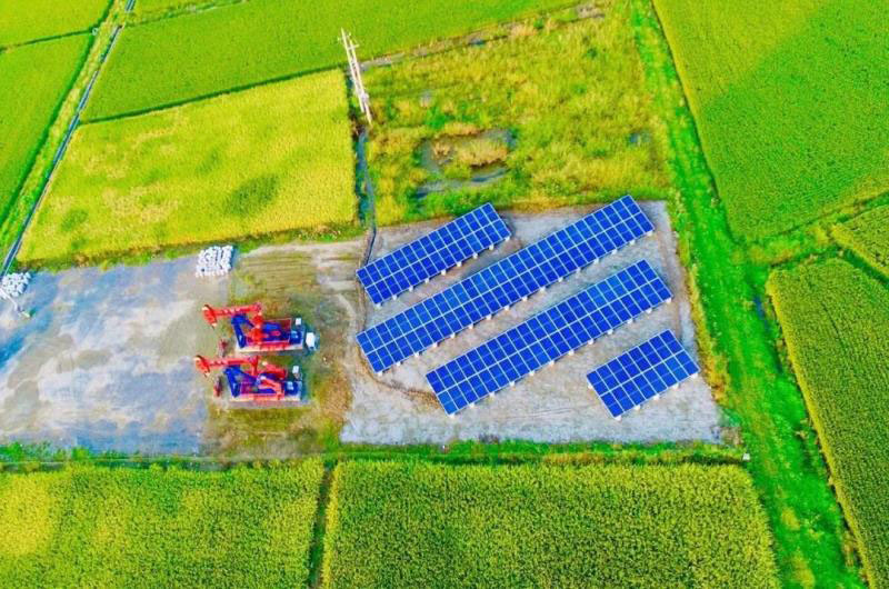 此次聯(lián)盛與中石化集團(tuán)江蘇油田合作打造的分布式光伏創(chuàng)新應(yīng)用場(chǎng)景是“磕頭機(jī)”光伏分布式環(huán)網(wǎng)供能項(xiàng)目。該項(xiàng)目一期總裝機(jī)量20MW,總投資8000萬(wàn)元,目前已正式開(kāi)工,預(yù)計(jì)將于12月底實(shí)現(xiàn)全容量并網(wǎng)發(fā)電。
