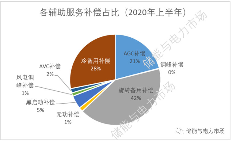 另外,100%的冷備用以及42%的旋轉(zhuǎn)備用補(bǔ)償費(fèi)用由火電機(jī)組獲得,備用(含旋轉(zhuǎn)備用及冷備用)是火電機(jī)組最主要的輔助服務(wù)類型。