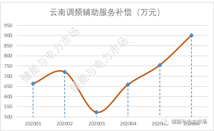 2020年1-6月,云南調(diào)頻輔助服務(wù)總費(fèi)用4225萬元,月均704萬元,補(bǔ)償量很低。