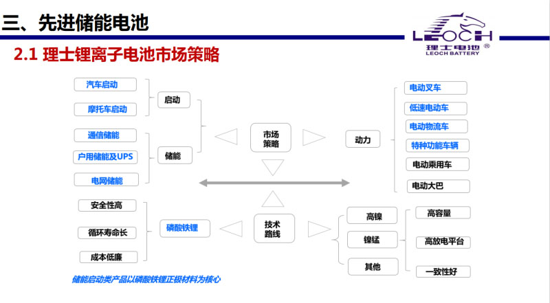 二、鋰電池策略。我們主要是做磷酸鐵鋰電池,鋰電池應(yīng)用于通信儲(chǔ)能、電網(wǎng)儲(chǔ)能,低速電車(chē)車(chē),再就是摩托車(chē)、汽車(chē)啟動(dòng)。我們生產(chǎn)設(shè)備也兼容三元鋰和錳酸鋰。