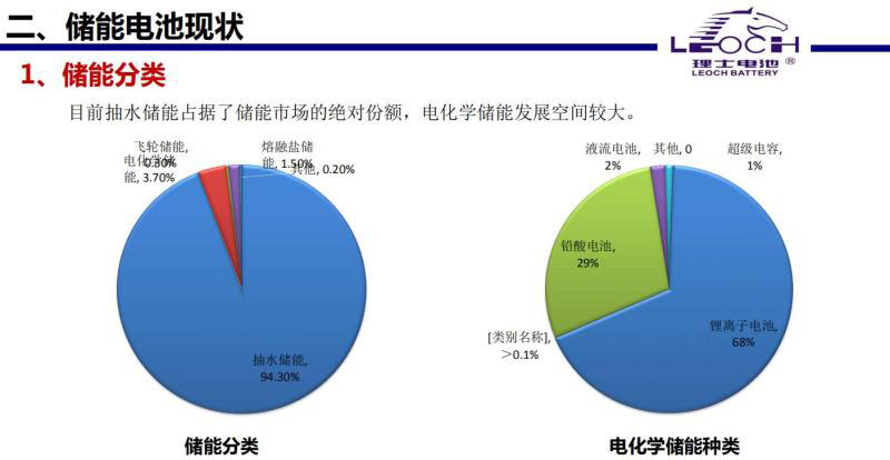 這是我們儲(chǔ)能電池現(xiàn)狀。抽水儲(chǔ)能占的比例是94%,電化學(xué)儲(chǔ)能站的比例比較小,但另外一個(gè)方向也說明電化學(xué)儲(chǔ)能發(fā)展空間很大。右邊的圖,鋰電池在電化學(xué)儲(chǔ)能里的比例越來越高,我這個(gè)還是2018年的數(shù)據(jù),上午劉秘書長(zhǎng)講鋰電池目前達(dá)到80%多,鉛酸還在下降。