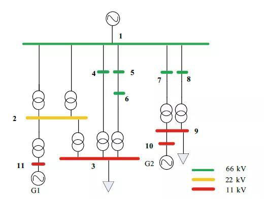 ? 圖3 11節(jié)點(diǎn)電力系統(tǒng)