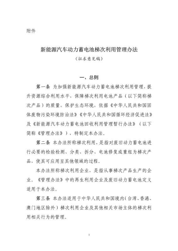 附件:新能源汽車動力蓄電池梯次利用管理辦法(征求意見稿)