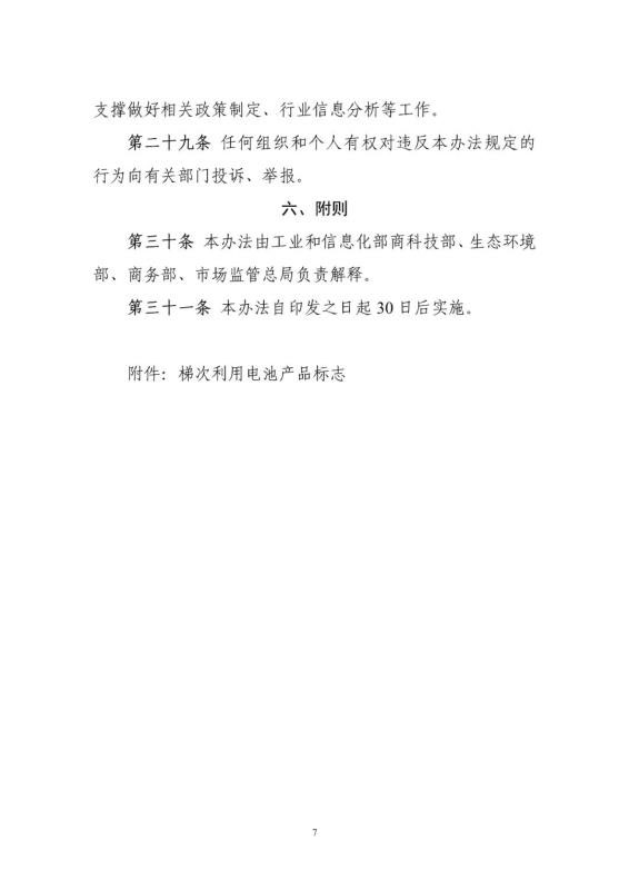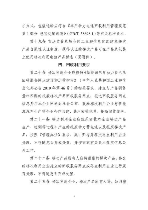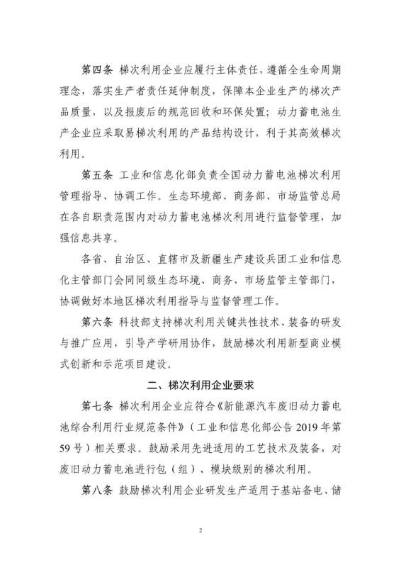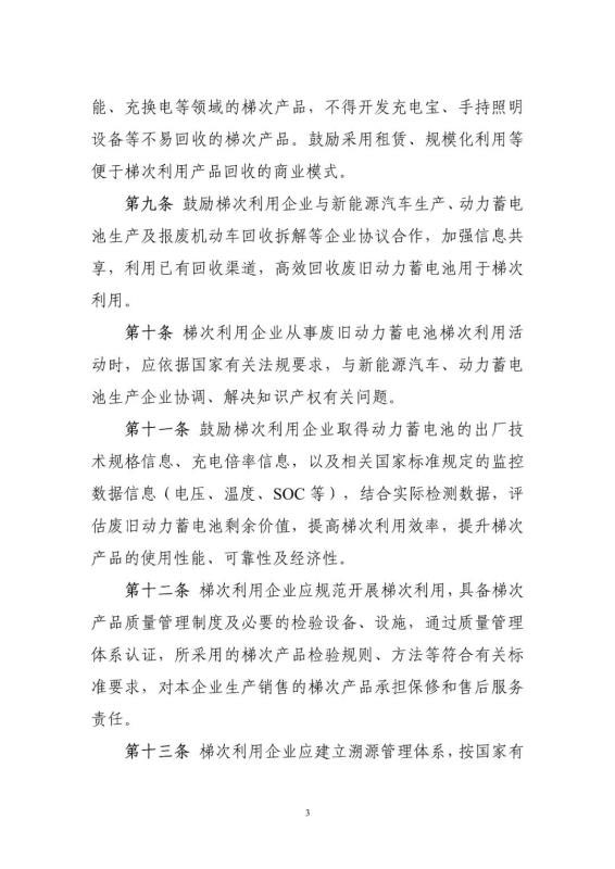 為加強新能源汽車動力蓄電池梯次利用管理,提升資源綜合利用水平,保障梯次利用電池產品的質量,我們組織編制了《新能源汽車動力蓄電池梯次利用管理辦法》?,F(xiàn)將征求意見稿向社會公開征求意見,如有意見或建議,請于2020年11月8日前反饋工業(yè)和信息化部節(jié)能與綜合利用司。