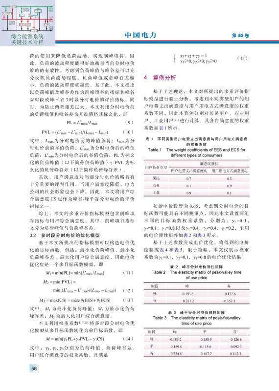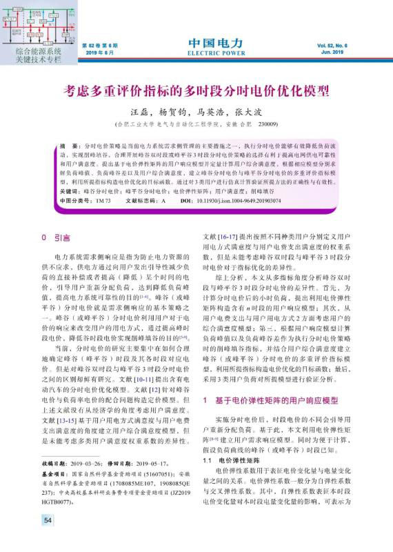 摘要:分時(shí)電價(jià)策略是當(dāng)前電力系統(tǒng)需求側(cè)管理的主要措施之一,執(zhí)行分時(shí)電價(jià)能夠有效降低負(fù)荷波動(dòng),實(shí)現(xiàn)削峰填谷。合理開(kāi)展峰谷雙時(shí)段或峰平谷3時(shí)段分時(shí)電價(jià)策略的選擇有利于提高電網(wǎng)供電可靠性和用戶(hù)滿(mǎn)意度。提出基于電價(jià)彈性矩陣的用戶(hù)響應(yīng)模型并定量計(jì)算用戶(hù)綜合滿(mǎn)意度,根據(jù)相應(yīng)模型分別求解負(fù)荷峰值、負(fù)荷峰谷差以及用戶(hù)綜合滿(mǎn)意度,建立峰谷分時(shí)電價(jià)與峰平谷分時(shí)電價(jià)的多重評(píng)價(jià)指標(biāo)模型,利用所提指標(biāo)構(gòu)造電價(jià)優(yōu)化的目標(biāo)函數(shù)。通過(guò)對(duì)3類(lèi)用戶(hù)進(jìn)行仿真計(jì)算驗(yàn)證所提方法的正確性與有效性。
