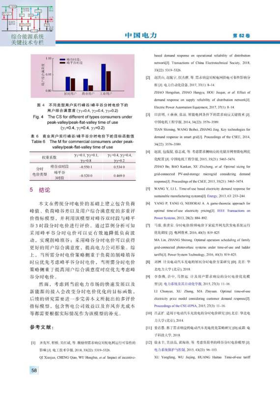 結(jié)論:本文在傳統(tǒng)分時(shí)電價(jià)的基礎(chǔ)上建立包含負(fù)荷峰值、負(fù)荷峰谷差以及用戶(hù)綜合滿(mǎn)意度的多重評(píng)價(jià)指標(biāo)模型,并利用該模型對(duì)峰谷雙時(shí)段與峰平谷3時(shí)段分時(shí)電價(jià)進(jìn)行評(píng)價(jià)。通過(guò)算例分析可知采用峰平谷分時(shí)電價(jià)可以更有效地降低負(fù)荷波動(dòng),實(shí)現(xiàn)削峰填谷;采用峰谷分時(shí)電價(jià)可以獲得更好的用戶(hù)綜合滿(mǎn)意度,提高電力公司形象。綜上,當(dāng)所需分時(shí)電價(jià)策略側(cè)重于負(fù)荷的削峰填谷時(shí)應(yīng)優(yōu)先考慮峰平谷分時(shí)電價(jià),當(dāng)所需分時(shí)電價(jià)策略側(cè)重于提高用戶(hù)綜合滿(mǎn)意度時(shí)應(yīng)優(yōu)先考慮峰谷分時(shí)電價(jià)。