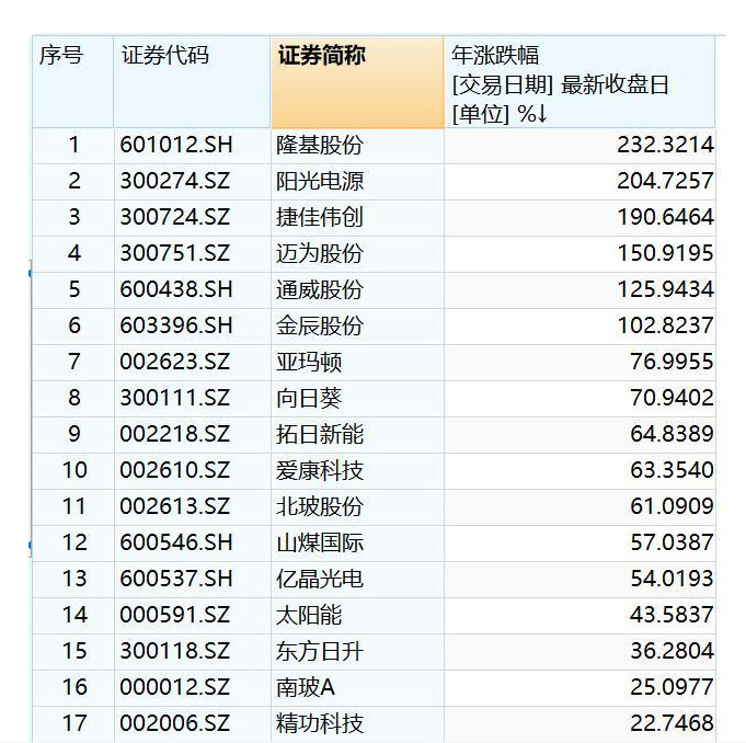 對于資本而言,明確且巨大的目標(biāo)市場更具吸引力。異質(zhì)結(jié)因此成為了眼下最受關(guān)注的光伏產(chǎn)業(yè)化技術(shù)。Wind資訊數(shù)據(jù)顯示,愛康科技、通威股份、山煤國際、東方日升股價(jià)一年內(nèi)的漲跌幅分別為63.35%、125.94%、57.03%、36.28%。
