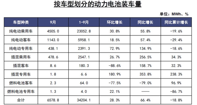 9月動力電池裝車6.6GWh,同比上升66.4%