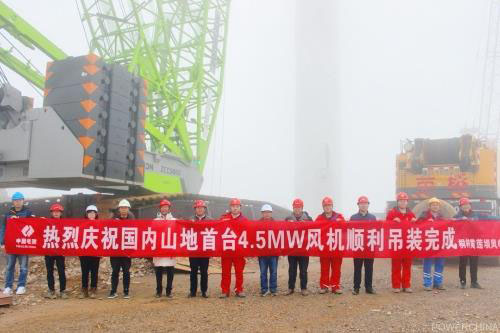 該項目地處貴州省遵義市桐梓黃蓮鄉(xiāng),屹立在大婁山脈中段東部高寒山區(qū)的兩條山脊之上,場內(nèi)海拔高度在1650米——1900米之間,風機設(shè)備建設(shè)機位分布在各獨立山頭上,面對施工占線長、山路崎嶇、吊裝作業(yè)面小、雨季施工等諸多挑戰(zhàn),項目部從大件運輸、施工安全、機具設(shè)備、人員、技術(shù)、應(yīng)急措施等各方面做了細致規(guī)劃,成功克服了當?shù)厣降?、天氣等不利因素,確保了4.5兆瓦風機設(shè)備大件安全入場。