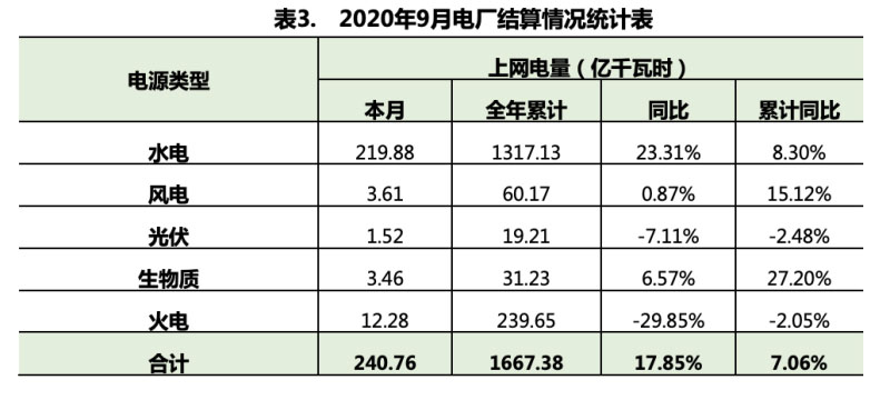 2020年1~9月,全省發(fā)電平均利用小時數(shù)為3075小時,同比增加102小時。其中,水電3313小時,同比增加134小時;火電2376小時,同比增加41小時;風(fēng)電1882小時,同比減少54小時;太陽能1109小時,同比減少50小時。
