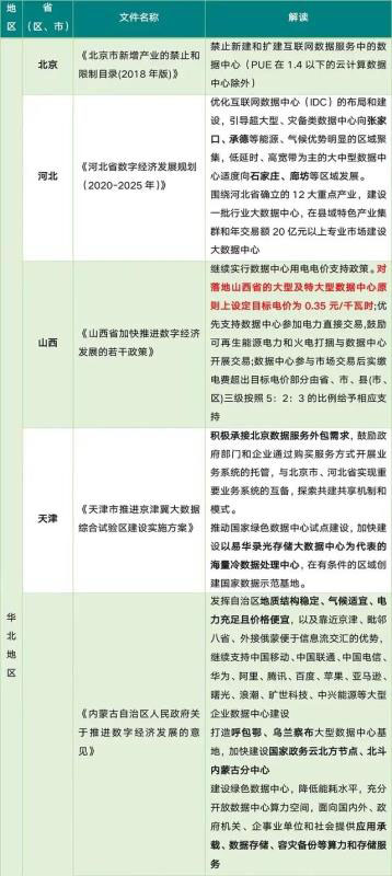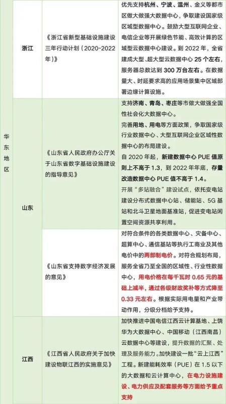 國內(nèi)部分?。▍^(qū)、市)數(shù)據(jù)中心相關(guān)政策列表