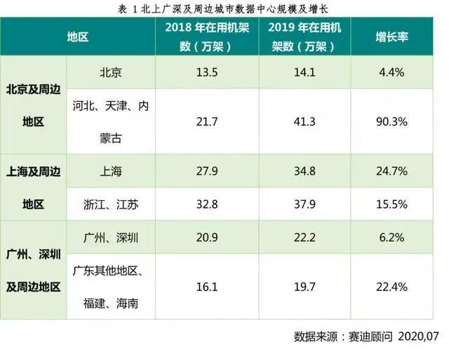 1.“北上廣”及周邊地區(qū)機(jī)架規(guī)模仍領(lǐng)跑全國