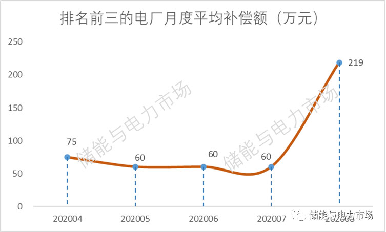 而排名前三的電廠平均月補(bǔ)償額,也從60萬左右上升到了超過200萬。