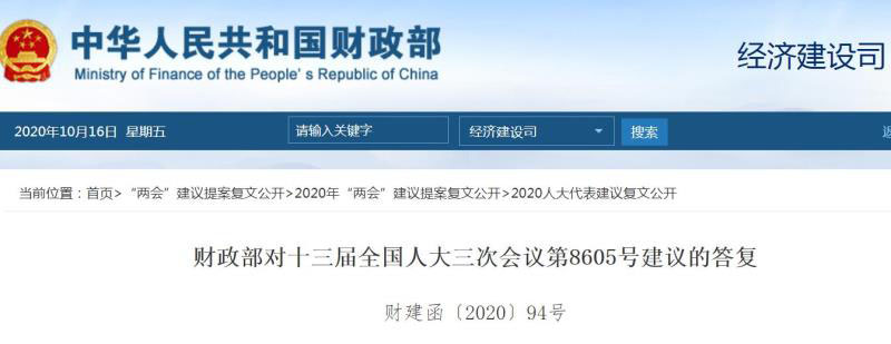 財(cái)政部對(duì)十三屆全國(guó)人大三次會(huì)議第8605號(hào)建議的答復(fù)