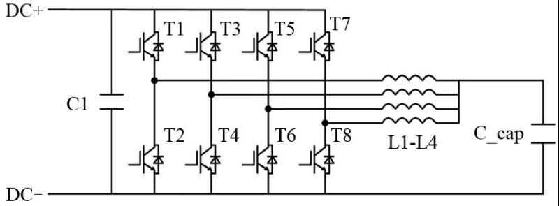 斬波器的主電路采用交錯(cuò)并聯(lián)的Buck-Boost電路拓?fù)?,超?jí)電容充電時(shí)由上管的IGBT和下管的反并聯(lián)二極管構(gòu)成降壓斬波電路,超級(jí)電容放電時(shí)由下管的IGBT和上管的反并聯(lián)二極管構(gòu)成升壓斬波電路,多支路交錯(cuò)并聯(lián)可以有效降低總輸出電流的紋波系數(shù)。