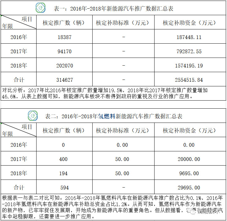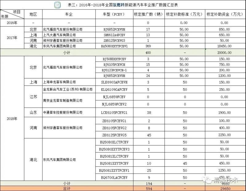 根據(jù)公示文件中2016年-2018年度新能源汽車推廣應(yīng)用補(bǔ)助資金清算審核車輛信息表可統(tǒng)計出以下數(shù)據(jù):