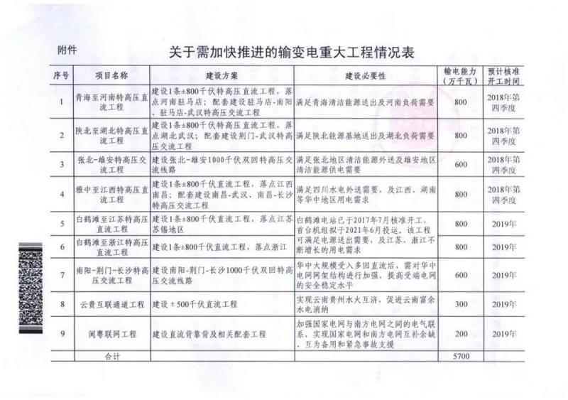 事實(shí)上,國家能源局在2018年曾下發(fā)文件《關(guān)于加快推進(jìn)一批輸變電重點(diǎn)工程規(guī)劃建設(shè)工作的通知》,新批復(fù)7條特高壓輸電線路,并要求加快相關(guān)線路的工程建設(shè)。青海至河南、陜西至湖北特高壓直流工程便在此次規(guī)劃中。
