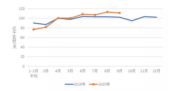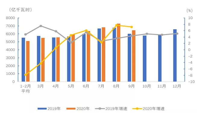 1-9月,全國(guó)全社會(huì)用電量54134億千瓦時(shí),同比增長(zhǎng)1.3%,其中,9月份全國(guó)全社會(huì)用電量6454億千瓦時(shí),同比增長(zhǎng)7.2%。