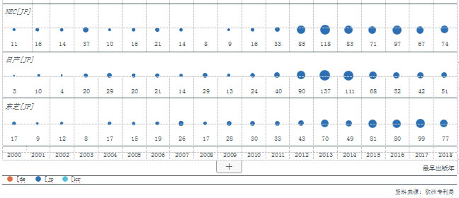 雖然松下(Panasonic)和索尼(Sony)等日本公司是這一領(lǐng)域的長(zhǎng)期領(lǐng)導(dǎo)者,但在過(guò)去十年里,其他頂級(jí)申請(qǐng)者只增加了他們的創(chuàng)新活動(dòng),這與鋰離子在車(chē)輛中的使用相關(guān)的專(zhuān)利活動(dòng)增加相吻合。在此期間,LG電子、豐田、日產(chǎn)和博世等公司迅速增加了電池領(lǐng)域的創(chuàng)新活動(dòng),重點(diǎn)是汽車(chē)應(yīng)用。三星在汽車(chē)電池領(lǐng)域也占有重要地位,但其專(zhuān)利增長(zhǎng)更多地集中在便攜式電子產(chǎn)品上。