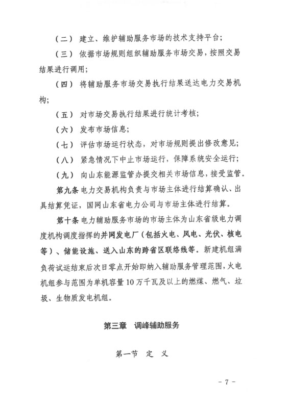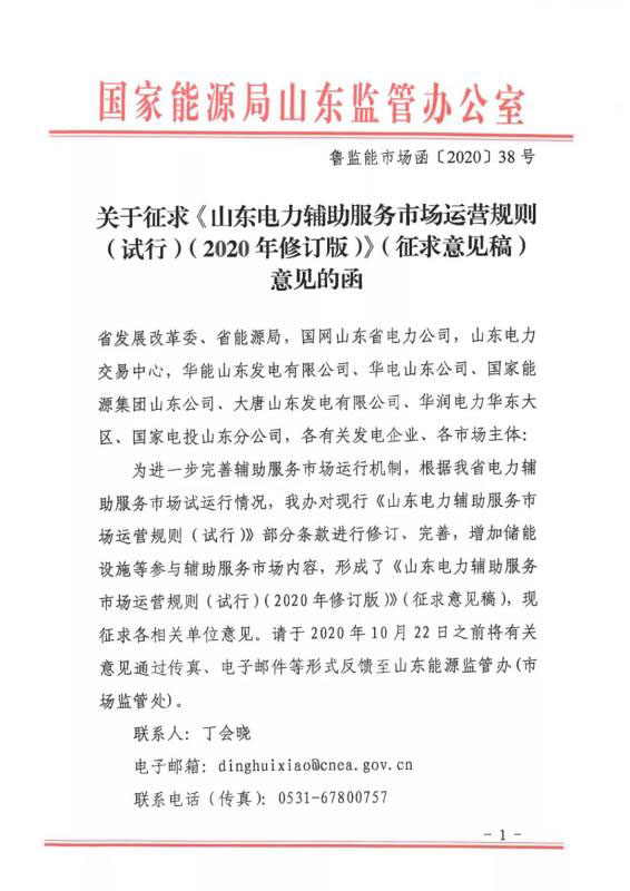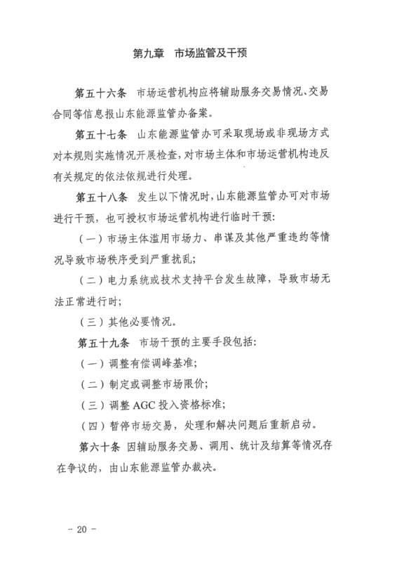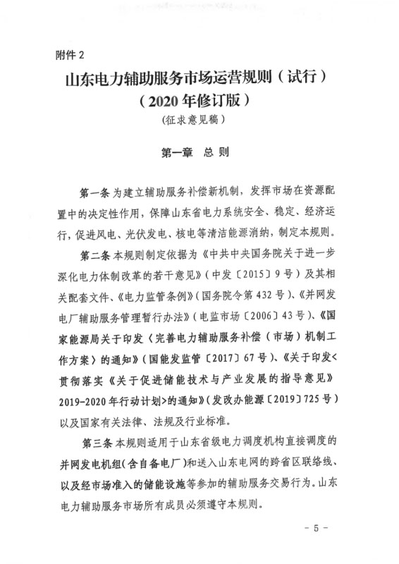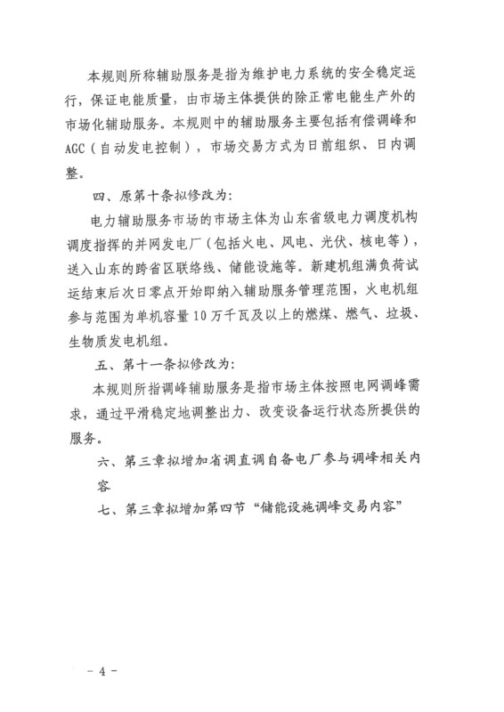 今日,國家能源局山東能監(jiān)局發(fā)布《山東電力輔助服務市場運營規(guī)則(試行)(2020年修訂版)》(征求意見稿),意見稿指出,在發(fā)電機組相關定義中新增儲能設施、并新增儲能設施調峰交易章節(jié)內容,其中指出規(guī)模在5MW/10MWh及以上獨立儲能設施、集中式新能源場站配套儲能設施等均可參與。