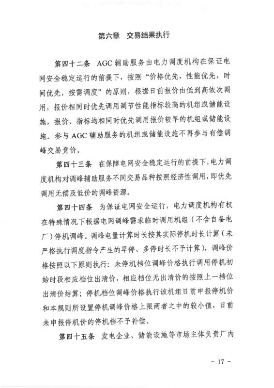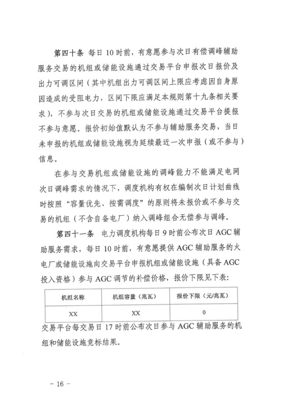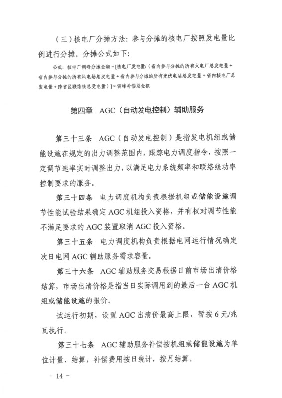 此外,AGC輔助服務交易增加儲能設施投入資格,AGC出清最高上限暫按6元/MW執(zhí)行。