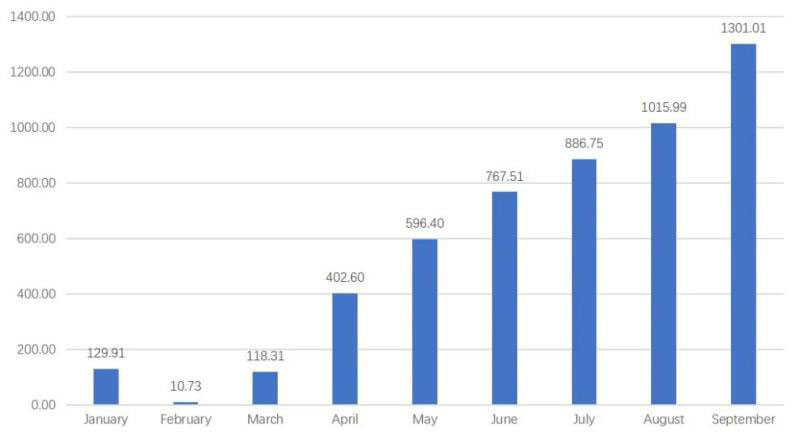 9月份戶用光伏項(xiàng)目新增1301MW,再創(chuàng)新高。