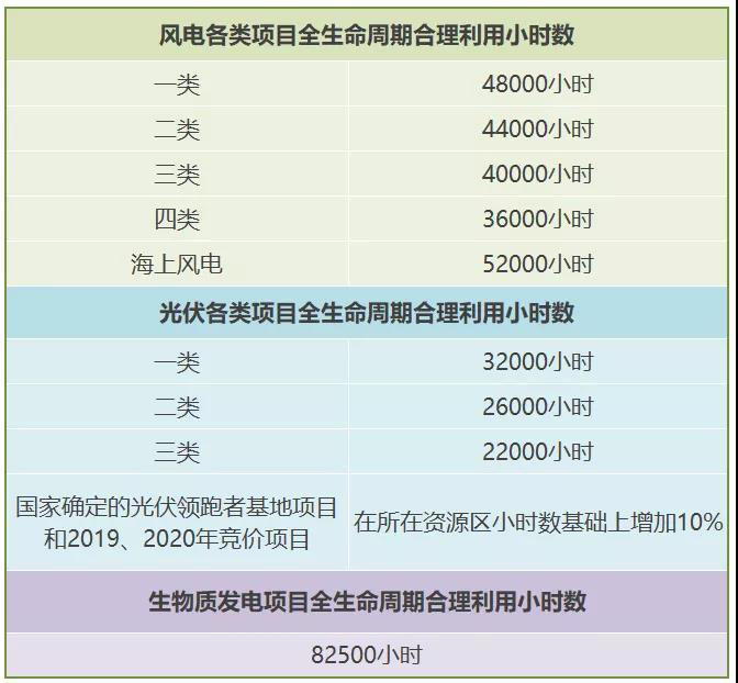 本次補(bǔ)充通知確定了各類項(xiàng)目的全生命周期合理利用小時(shí)數(shù):