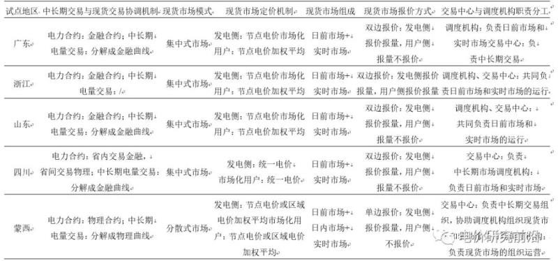 市場(chǎng)建設(shè)目標(biāo)方面,各試點(diǎn)地區(qū)的目標(biāo)可歸結(jié)為還原電力商品屬性、發(fā)現(xiàn)電力價(jià)格信號(hào)、賦予市場(chǎng)主體自主選擇權(quán)、促進(jìn)清潔能源消納等。調(diào)度方式方面,當(dāng)前各試點(diǎn)地區(qū)都采用集中調(diào)度的方式,由調(diào)度機(jī)構(gòu)統(tǒng)一確定機(jī)組組合和日發(fā)電計(jì)劃。