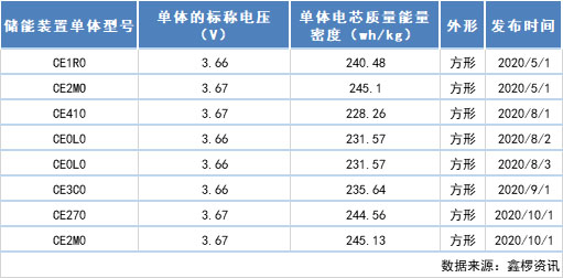 表:2020年CATL高電壓電池型號