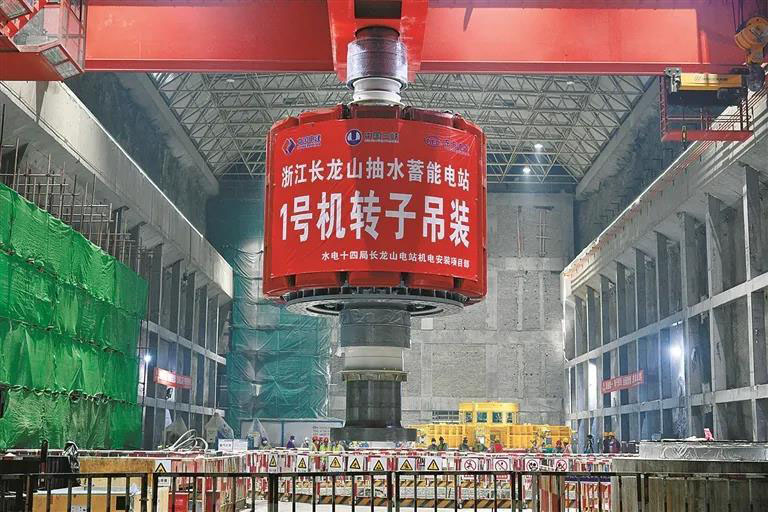 10月17日12時6分,由東方電氣集團東方電機有限公司(簡稱“東方電機”)自主研制的國內(nèi)最高水頭抽水蓄能電站——浙江長龍山抽水蓄能電站首臺機組轉(zhuǎn)子吊裝就位,標(biāo)志著長龍山電站首臺機組安裝工作完成又一重大里程碑節(jié)點。