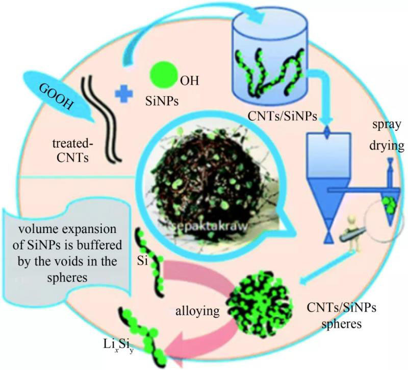 圖8 噴霧干燥法制備一種硅碳納米管(CSs)復合材料原理