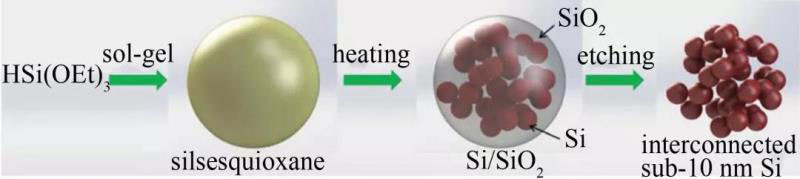 圖4 相互交聯(lián)的10 nm以下硅納米顆粒的合成