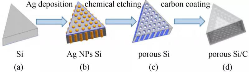 圖2 多孔硅/碳復合材料的制備原理