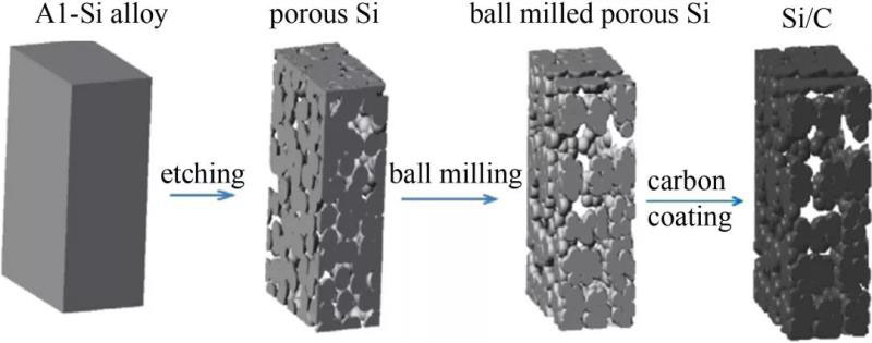 圖1 從Al-Si合金到Si/C復合材料的制備工藝